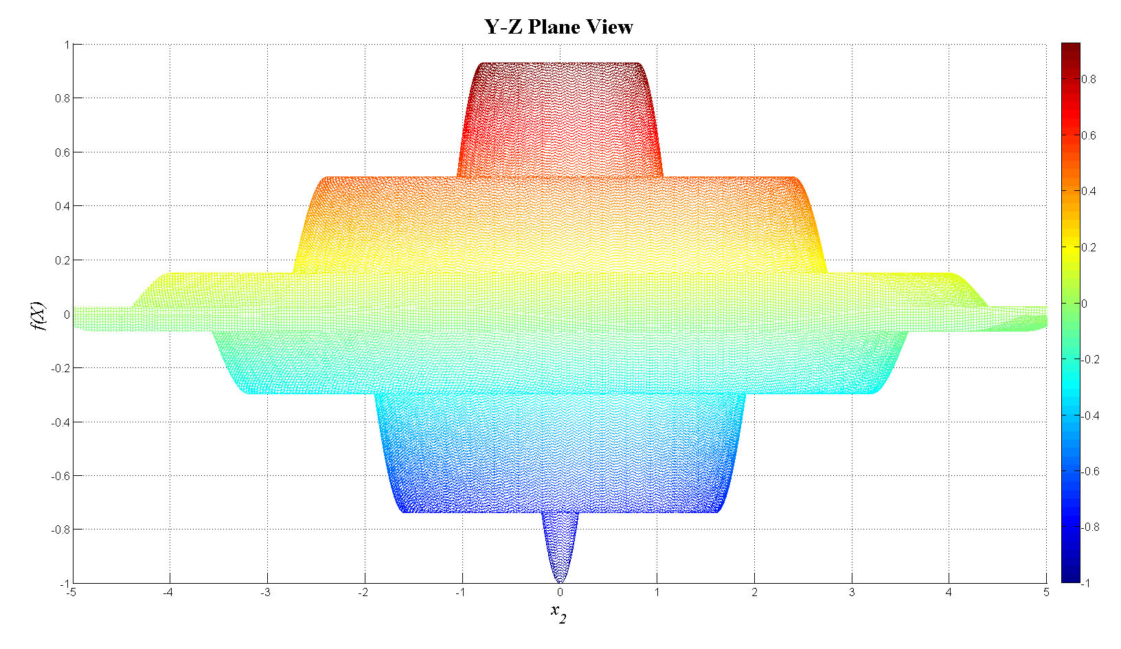 mesh(x1,x2,f_tot);view(0,0);colorbar;set(gca,'FontSize',12);