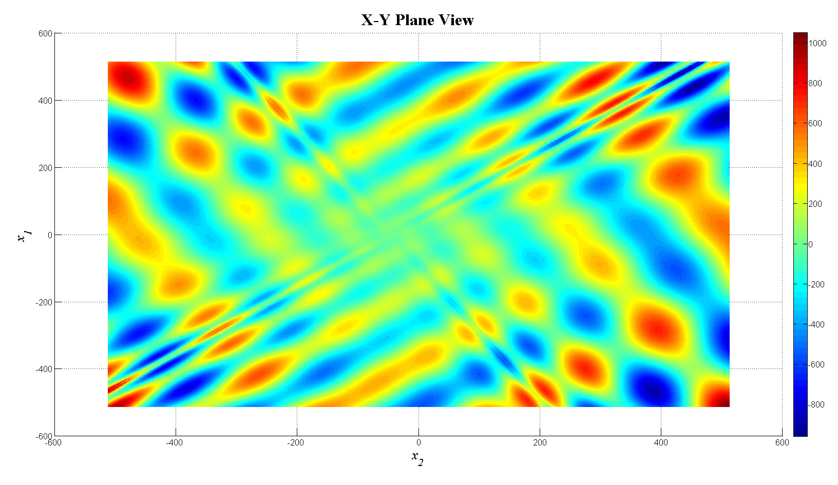 mesh(x1,x2,f_tot);view(0,90);colorbar;set(gca,'FontSize',12);